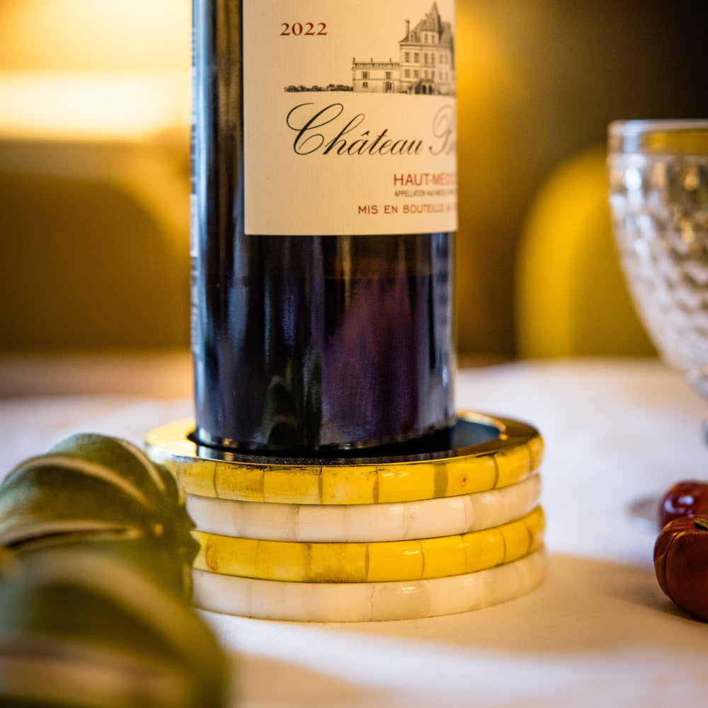 Wine Coaster | Yellow & White | Striped