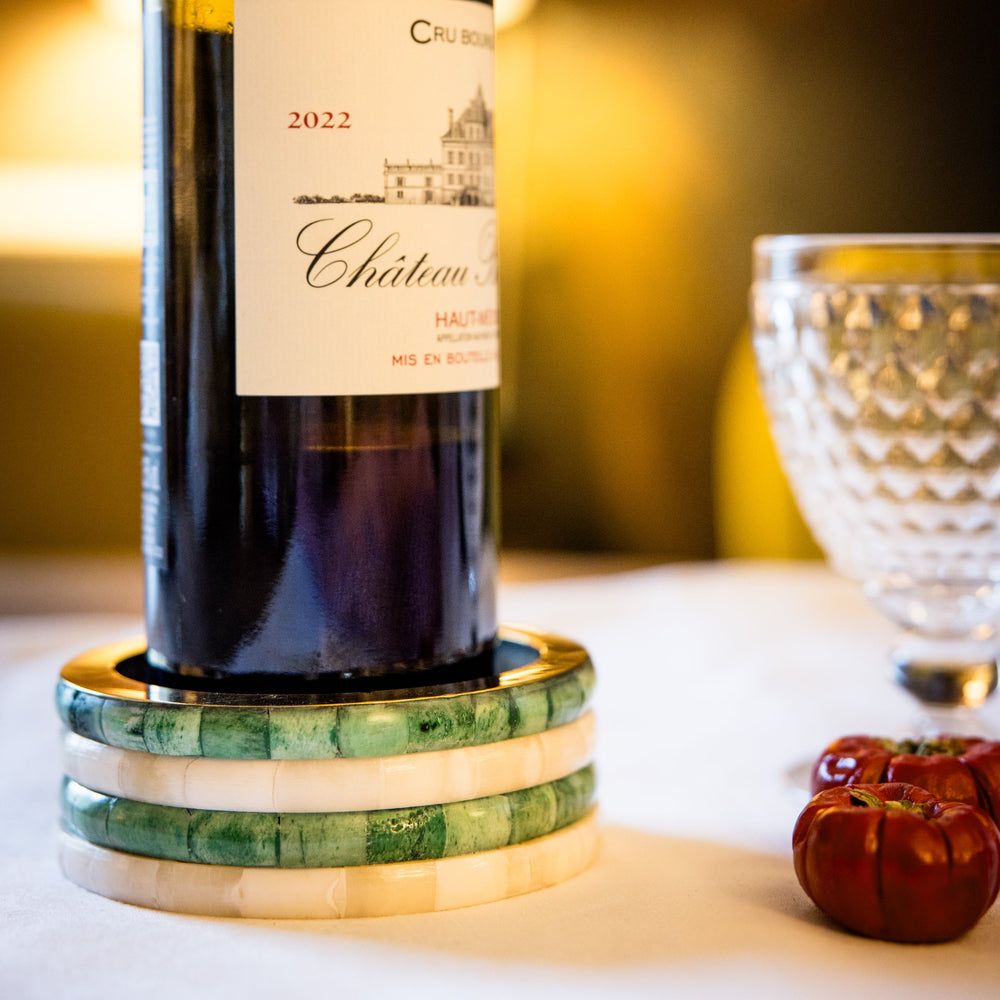 Wine Coaster | Green & White | Striped