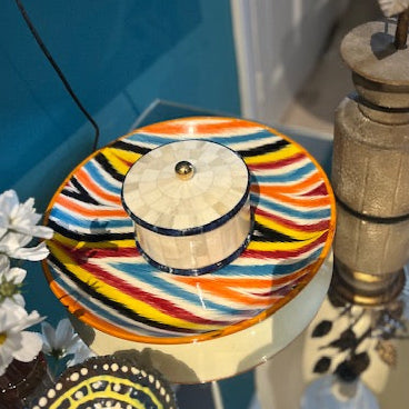 Round Bone Inlay Box | Blue & White