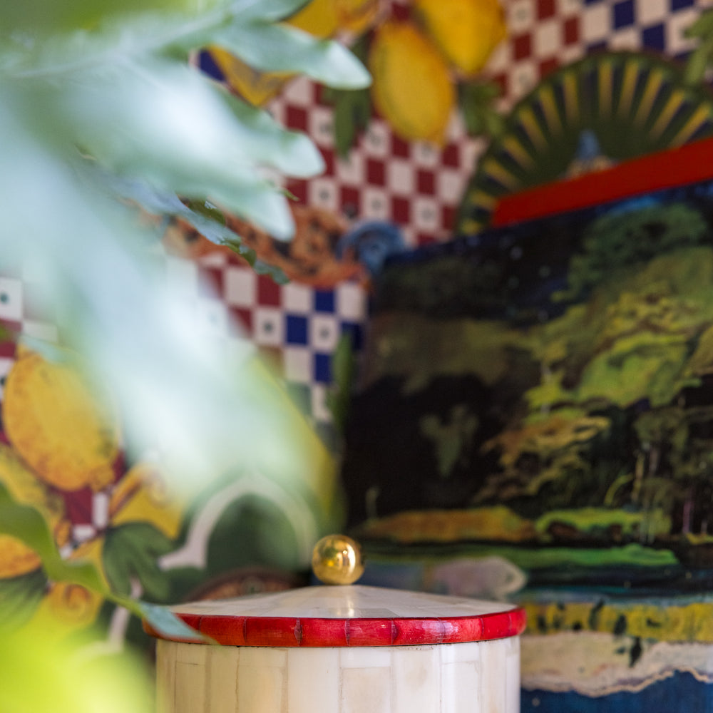 New to our bone inlay collection is our storage pot in bone inlay with a brass knob. These look so pretty on a dressing table or chest of drawers to keep jewellery and nic nacs in. They are also lovely in a bathroom to hide away cotton wool pads etc.