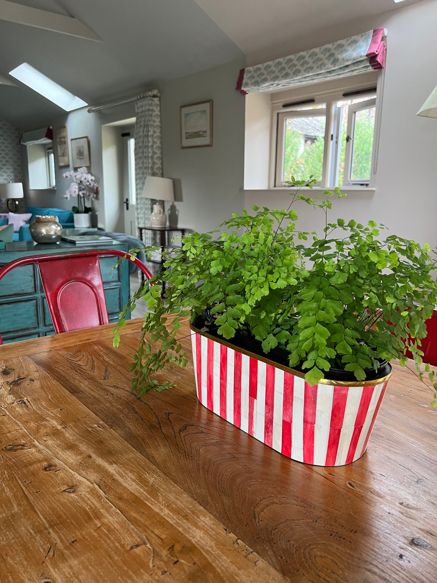Our oblong planters are perfect for a console table, a window sill or a rectangular table. Each planter comes with a tin insert making it easy to make arrangements/water the plants. The outside base is lined with felt to stop any surface being scratched.