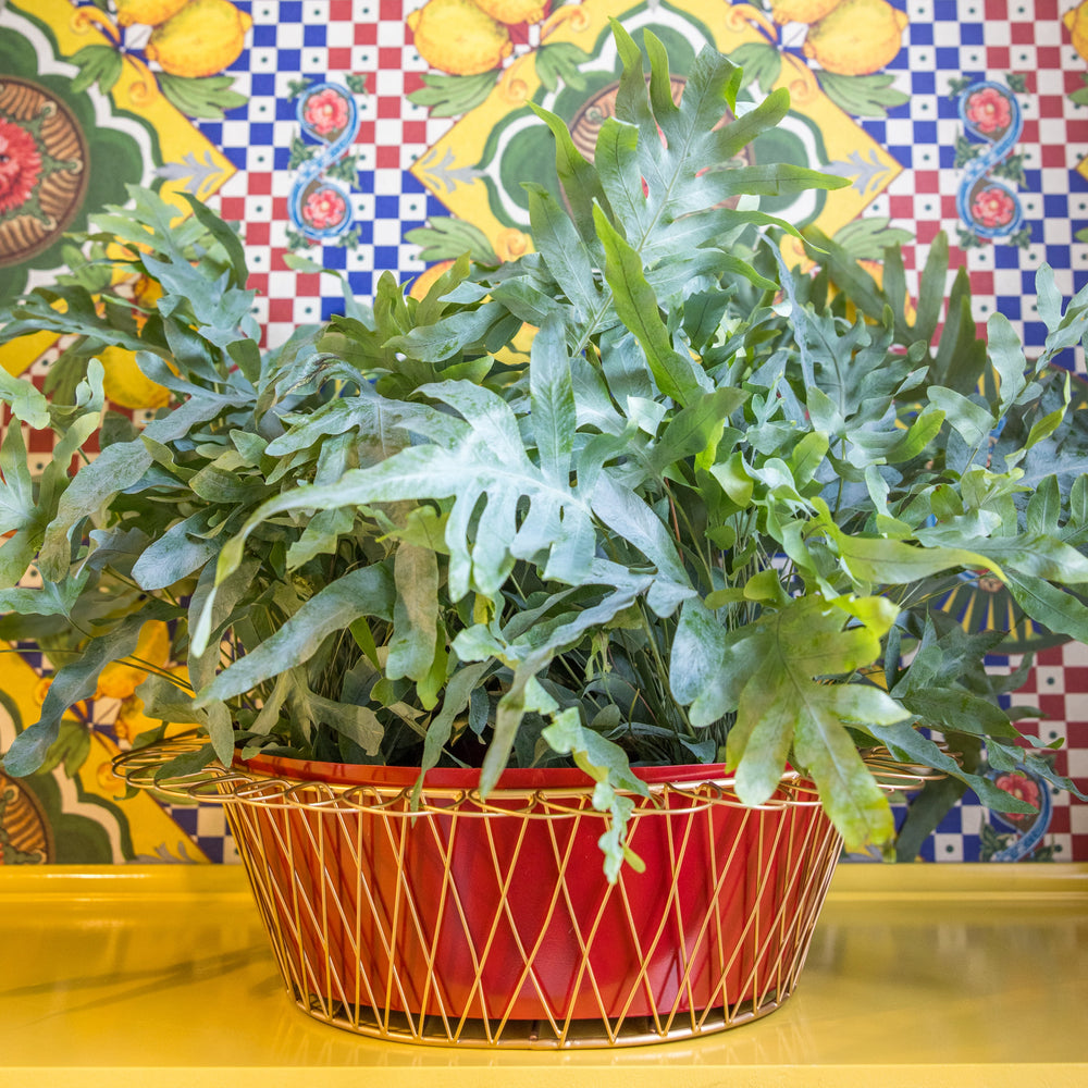 Wire Basket Planter | Cherry Red & Gold