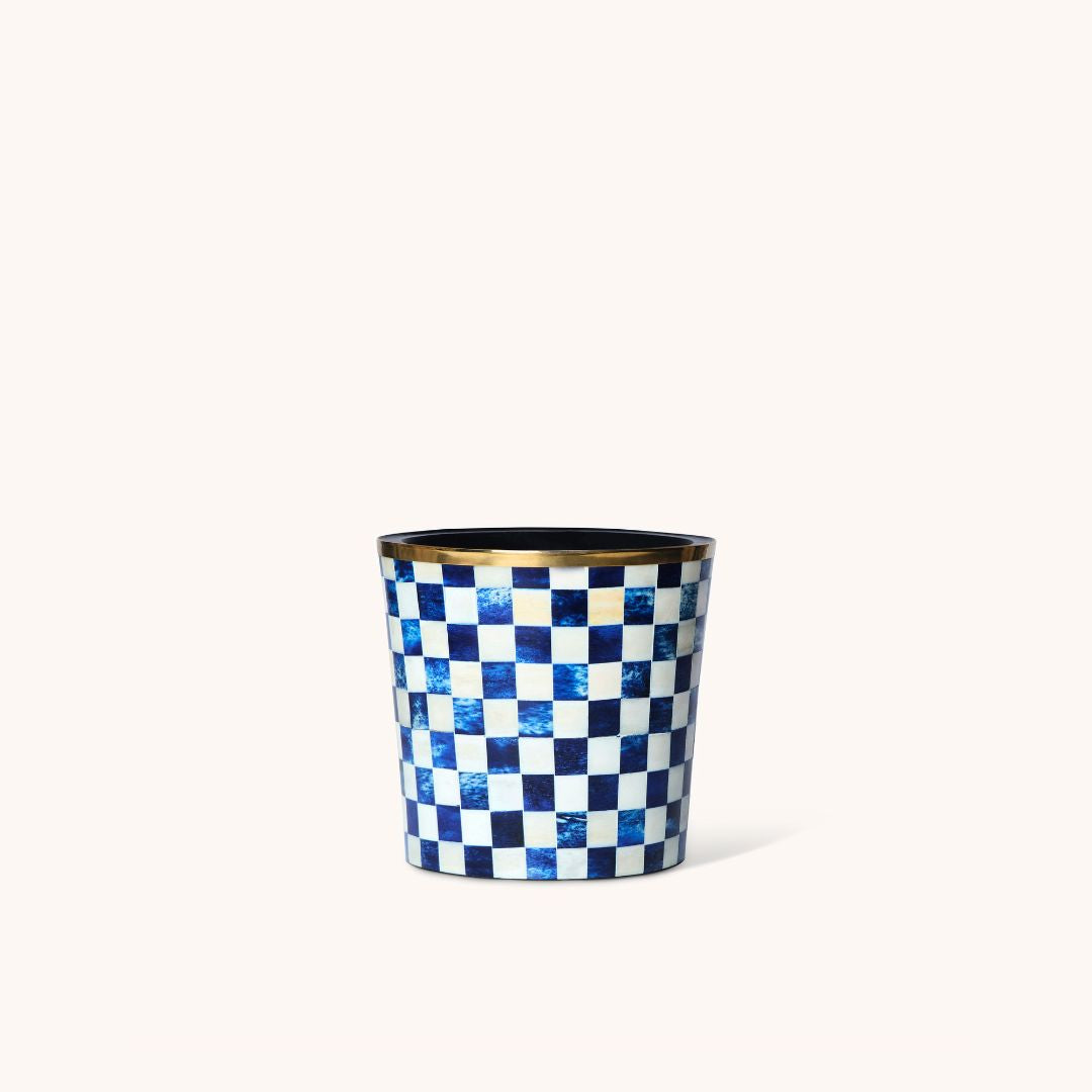Runder Inlay-Pflanztopf | Mittel | Marineblau | Kariert