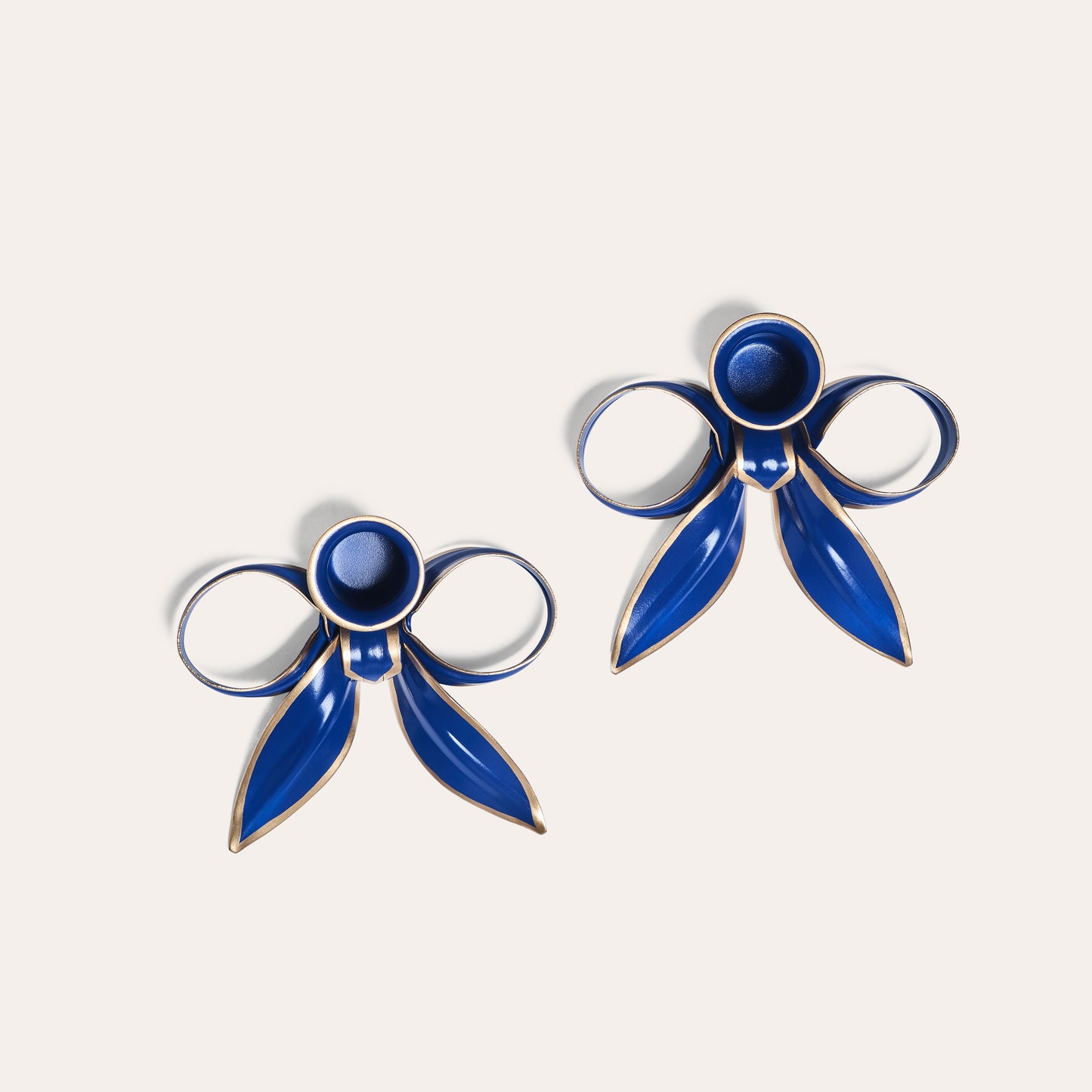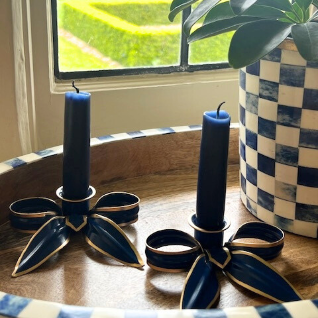 Ein Paar Kerzenhalter mit Schleife | Marineblau