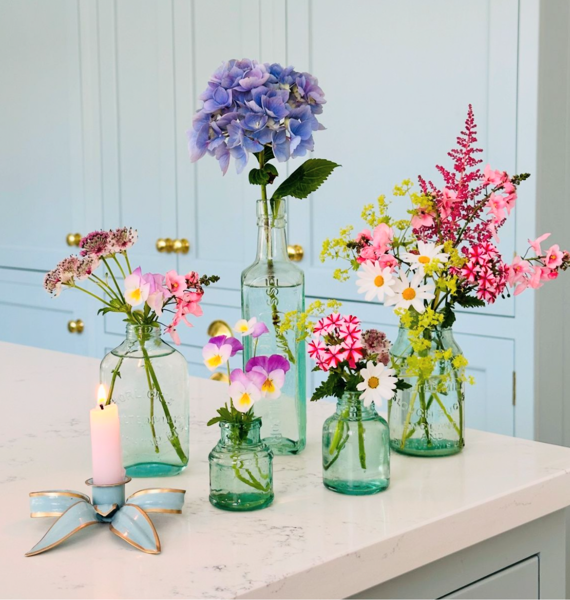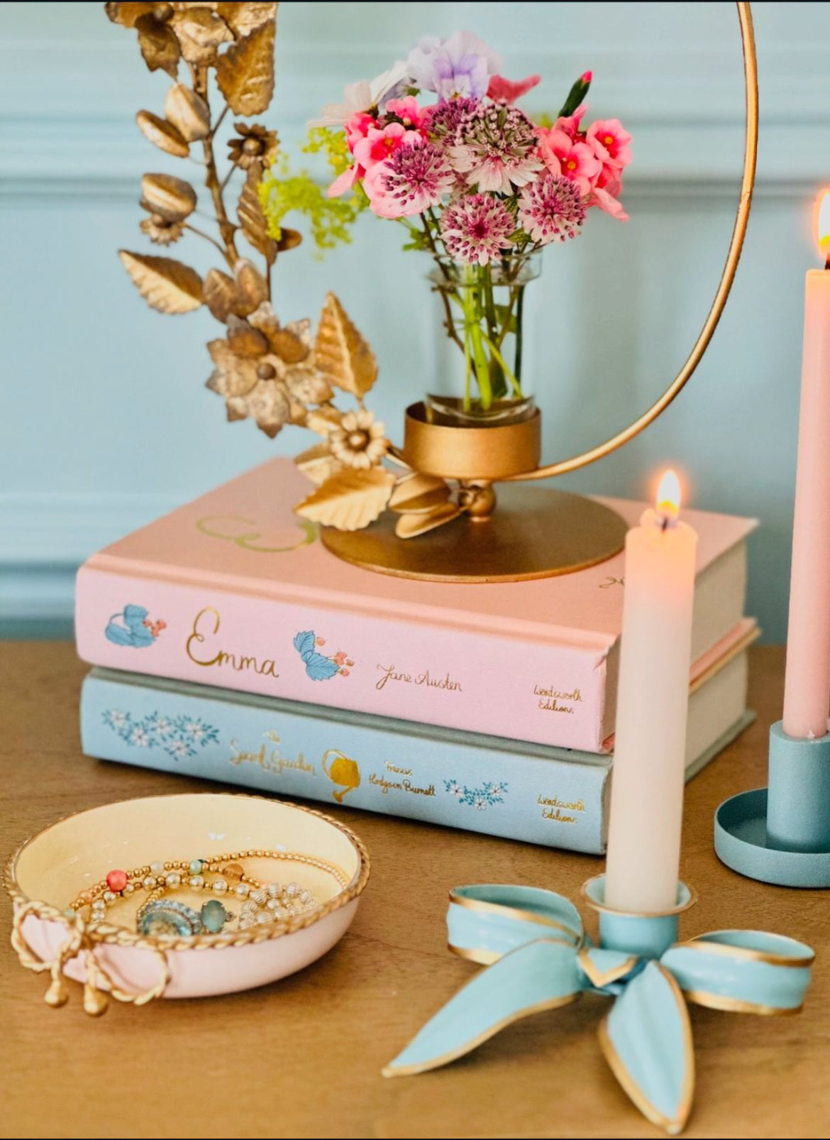 Ein Paar Bogenkerzenhalter | Puderblau