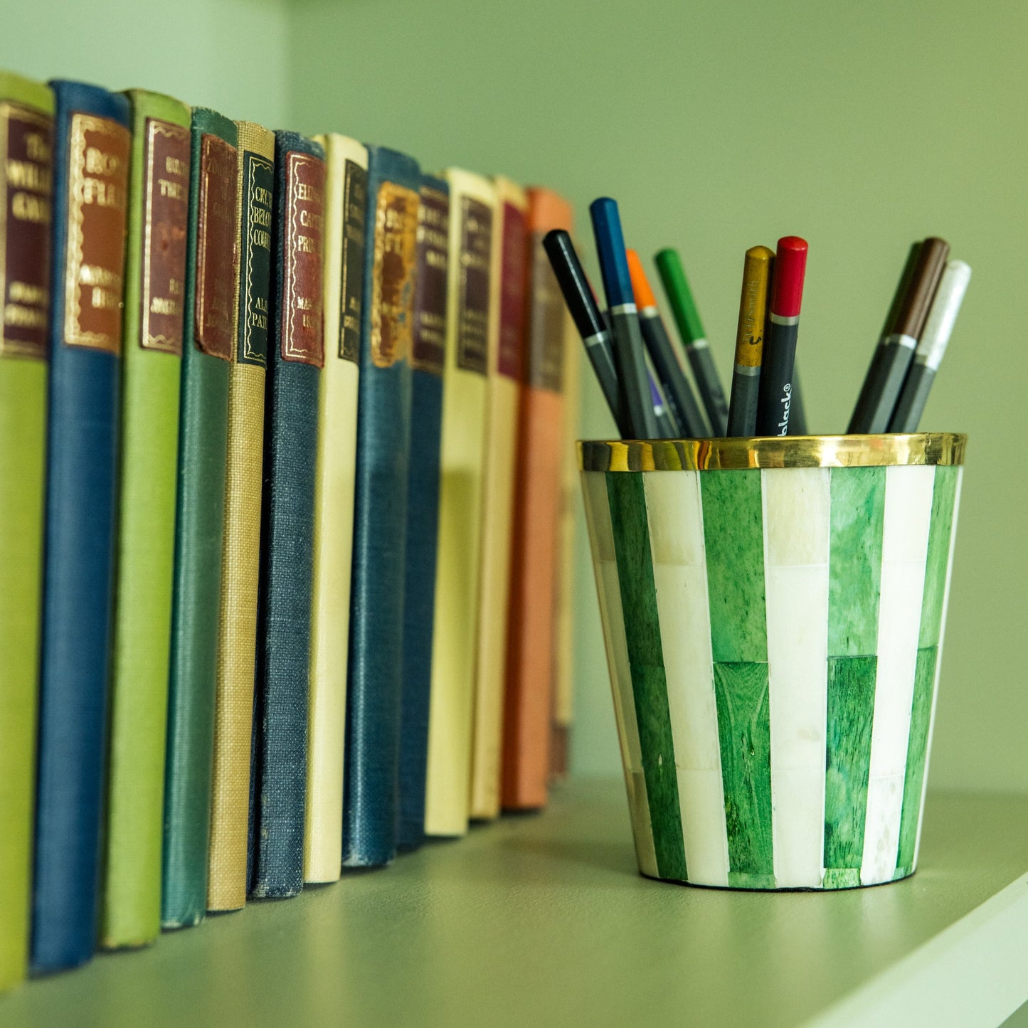 Neu im Sortiment – Etwas höher als unsere Original-Pinselbehälter und mit Streifen statt Zickzack-Muster. Ein echter Alleskönner – für Stifte, Make-up-Pinsel, Zahnbürsten oder andere Kleinigkeiten, die einfach ein Zuhause brauchen!