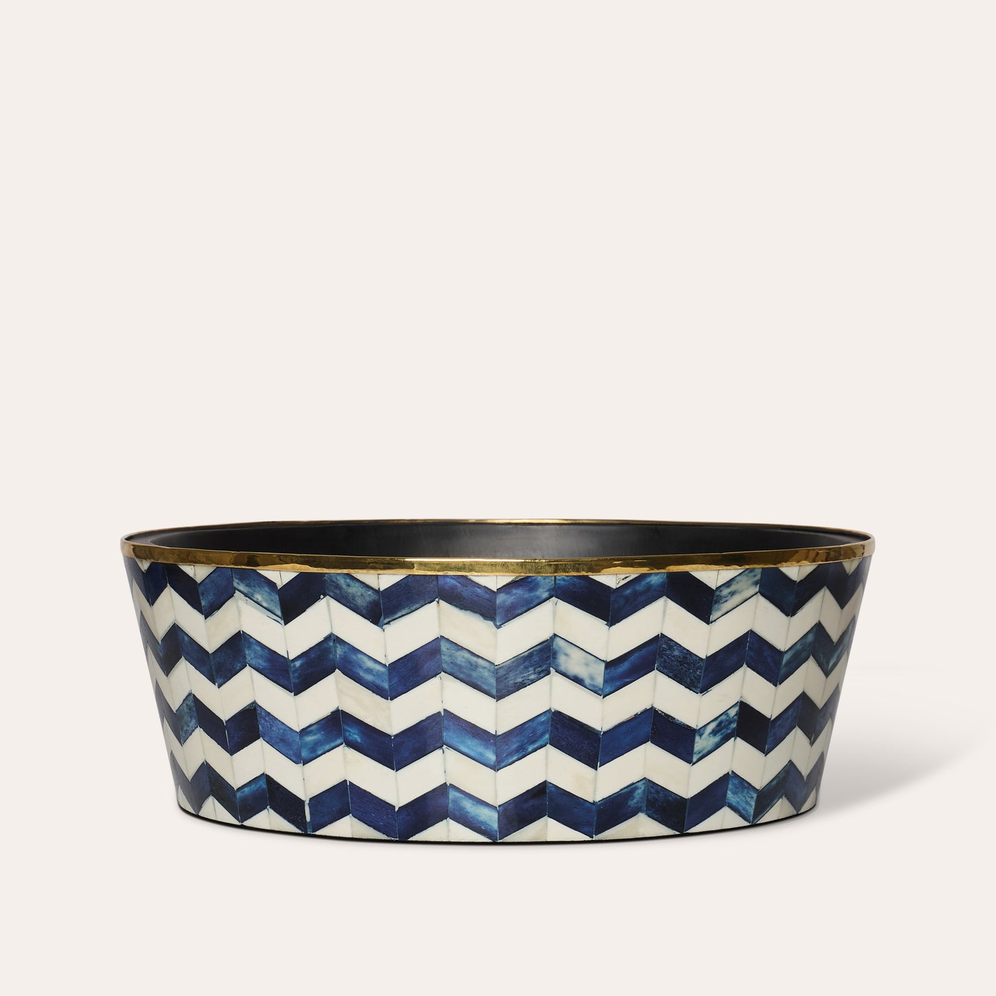 Runder Inlay-Pflanztopf | Groß | Marineblau | Chevron