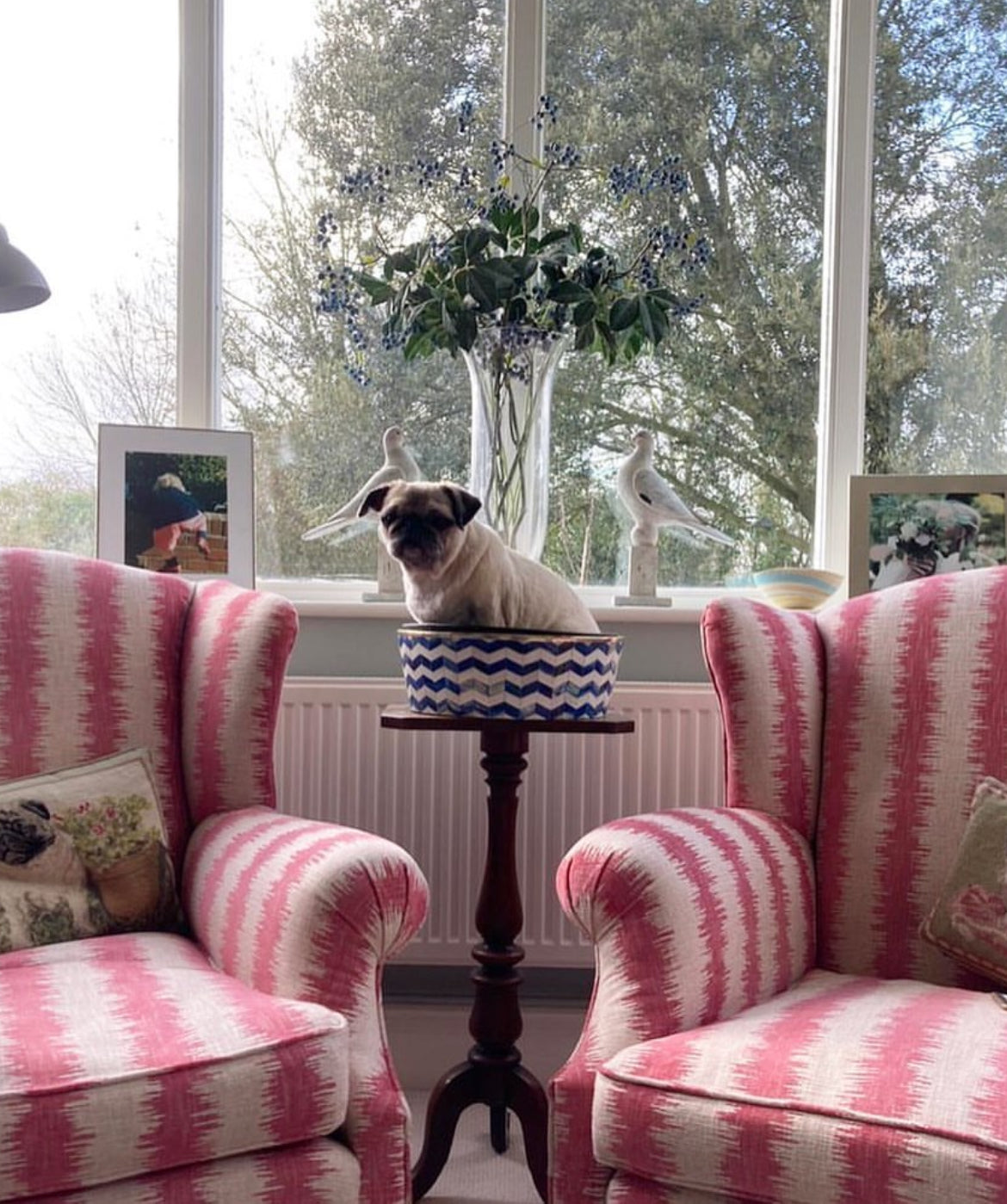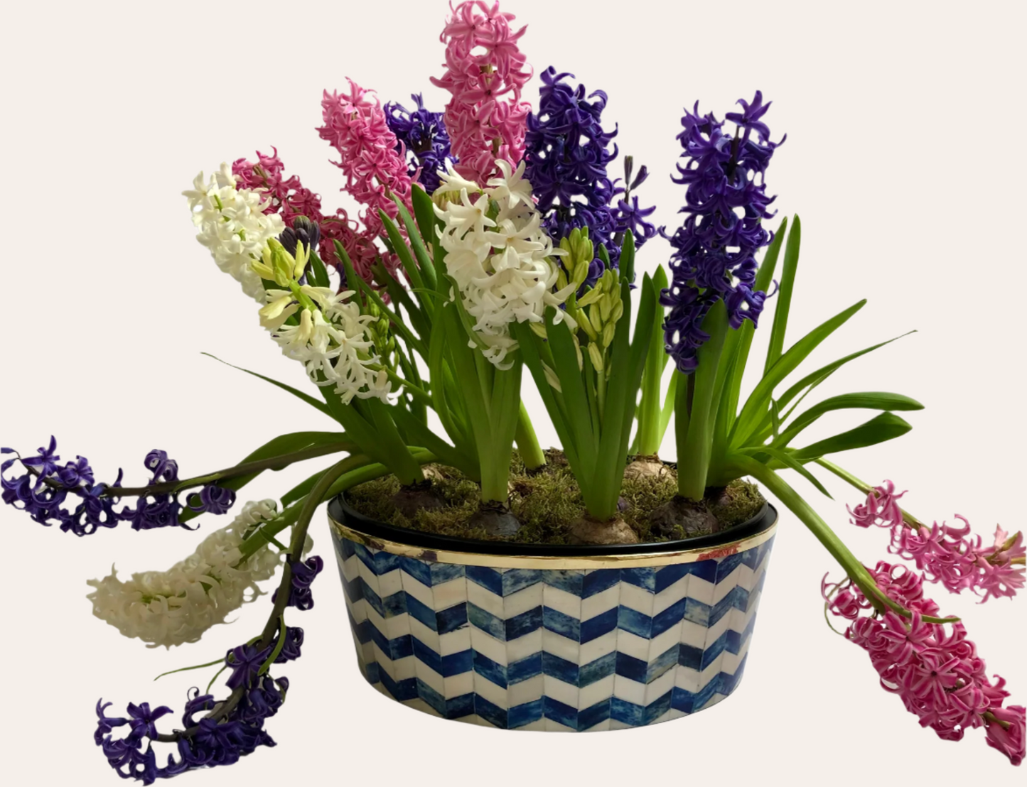 Unser originaler großer Bone Inlay-Pflanztopf mit Messingrand im Schachbrettmuster.