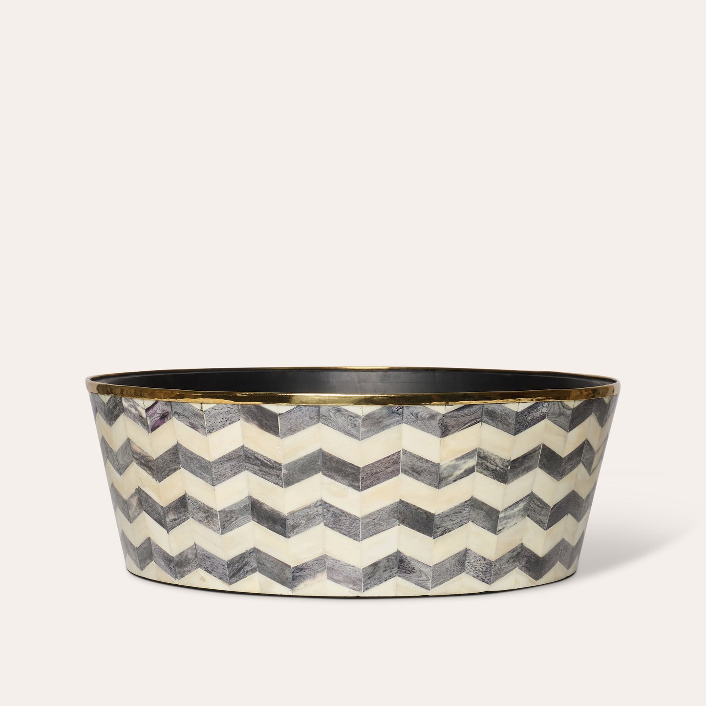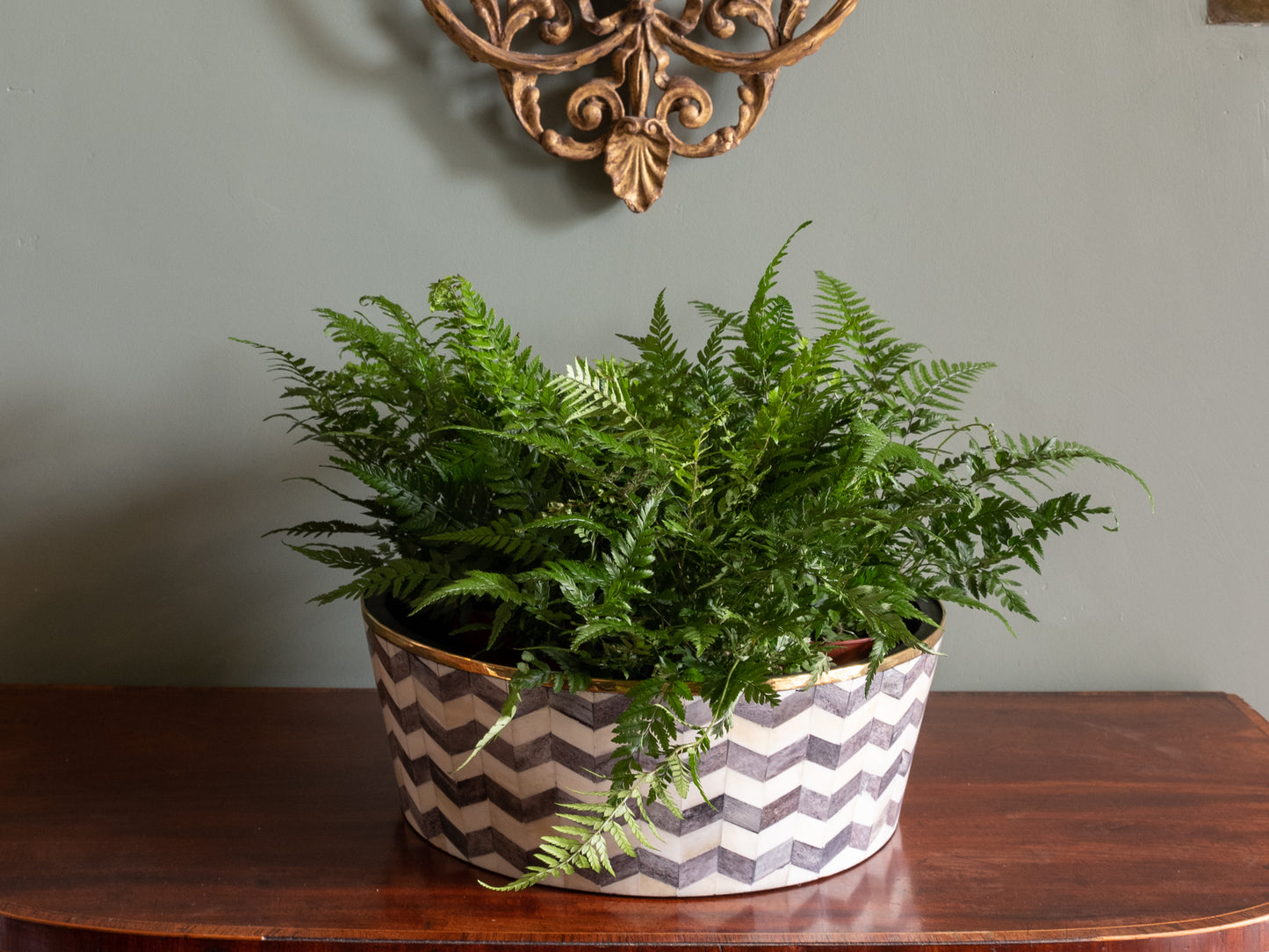 Unser originaler großer Pflanzkübel mit Bone Inlay und Messingrand im Chevron-Design.