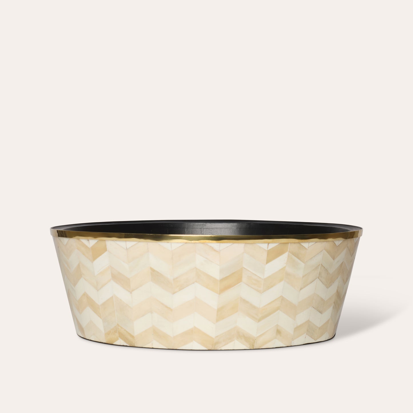 Unser originaler großer Pflanzkübel mit Bone Inlay und Messingrand im Chevron-Design.