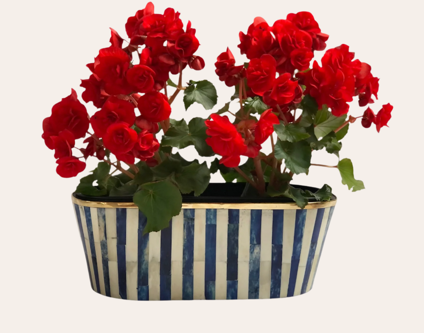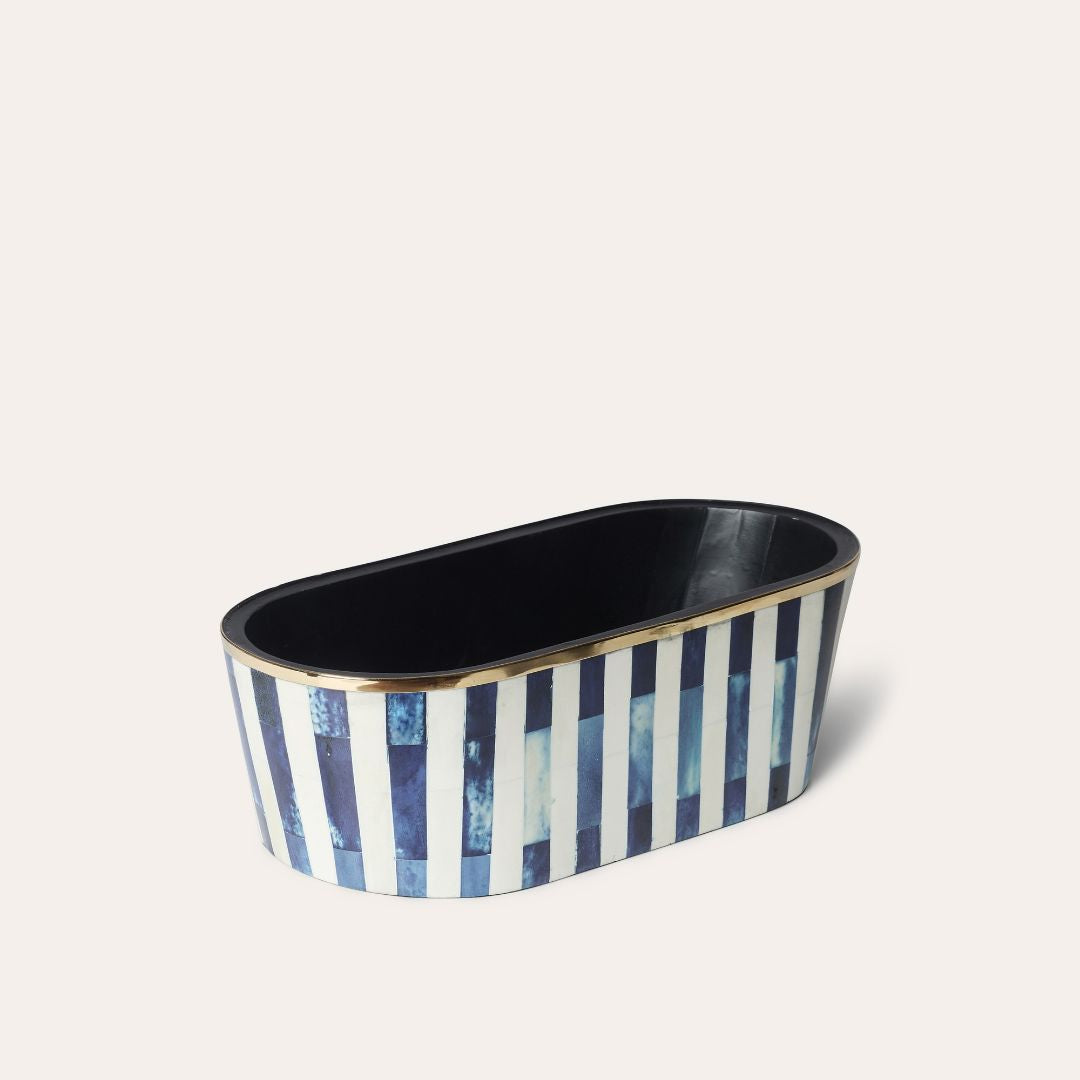 Länglicher Inlay-Pflanztopf | Groß | Marineblau | Gestreift