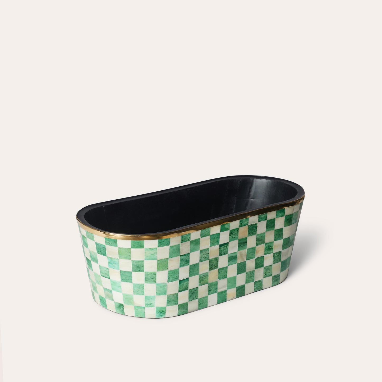 Länglicher Inlay-Pflanztopf | Groß | Waldgrün | Kariert