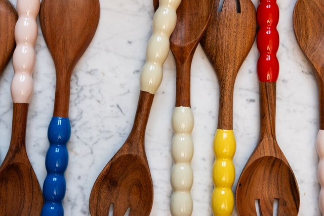 Salatbesteck in verschiedenen Farben. Es ist klobig und angenehm schwer und eine tolle Ergänzung für Ihren Tisch.