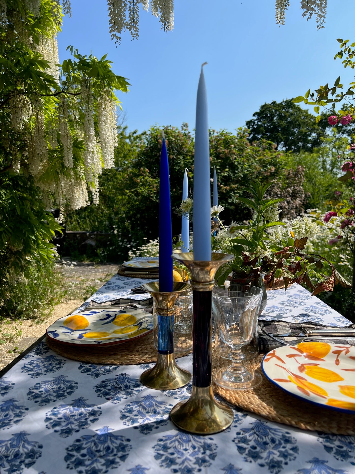 Precio regular £30.00A classic column shaped candle holder in brass and acrylic, the play of light through the acrylic, and the way it bounces off the brass, make these a very eye-catching addition to the table.