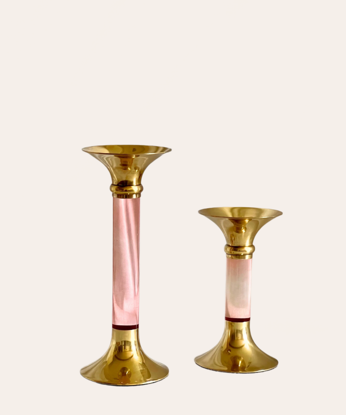 Brass and Acrylic Candleholder | Large | Rose Pink
