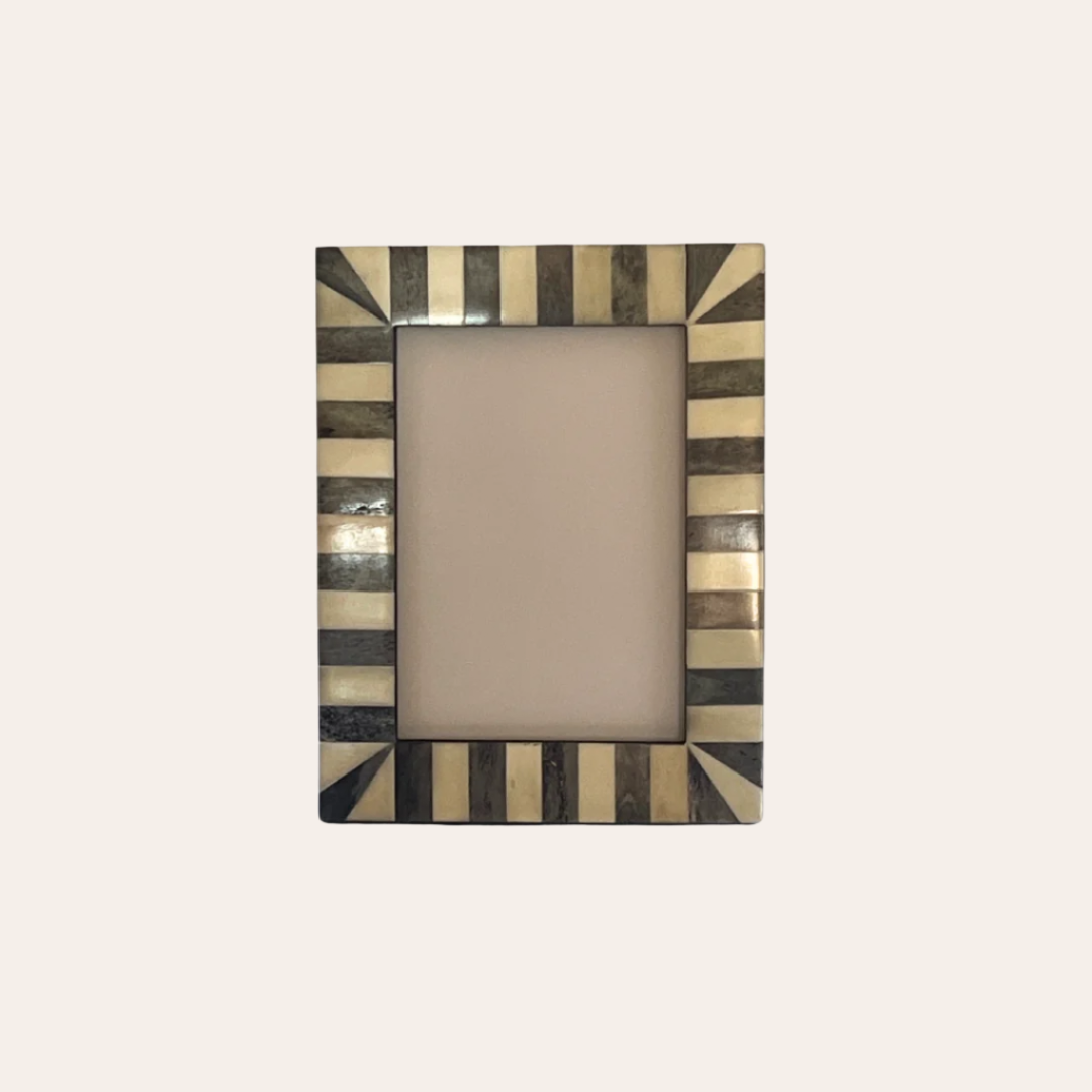 Grey and white classic bone inlay frame. Each frame fits a 7 X 5" photograph and can either stand portrait or landscape.