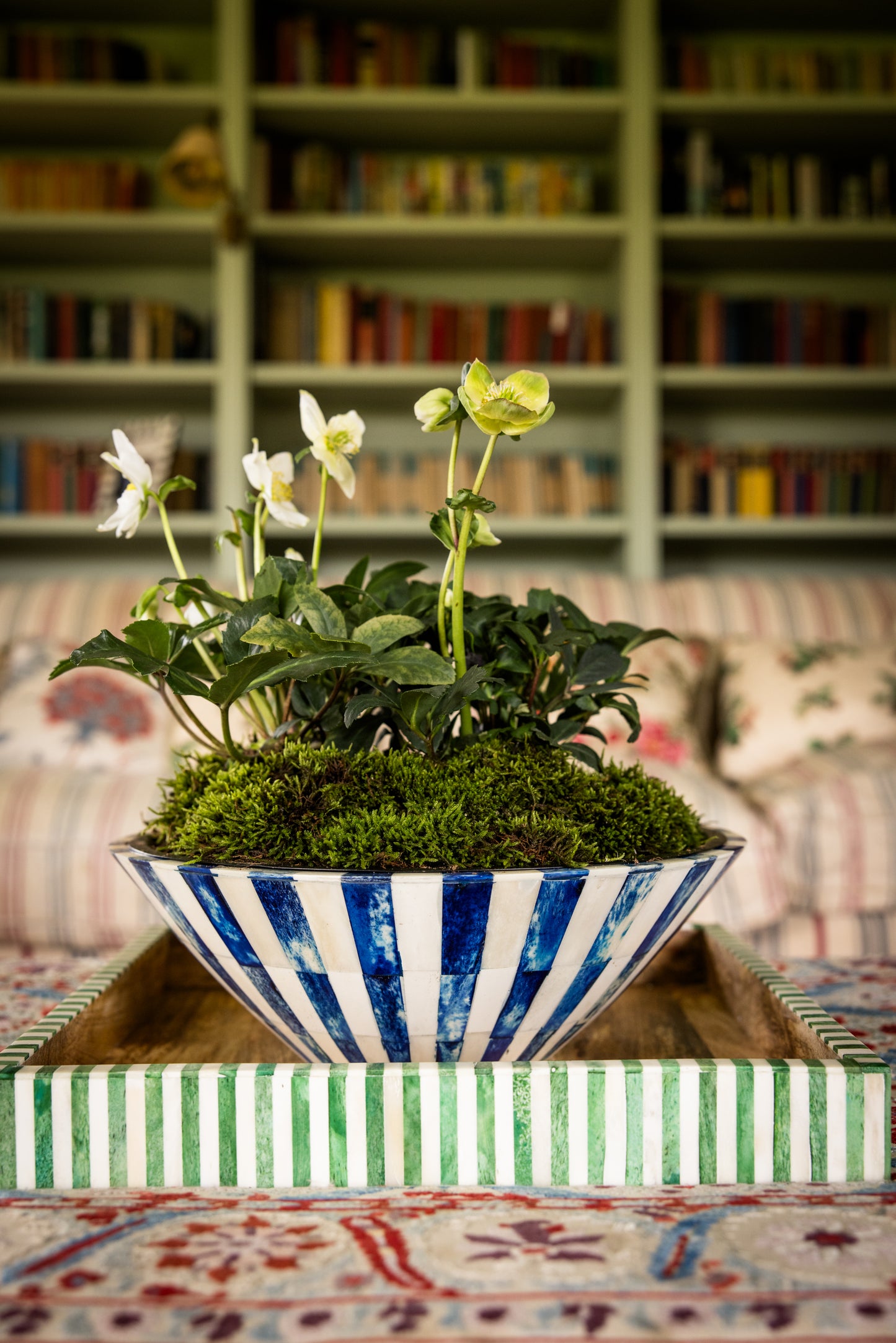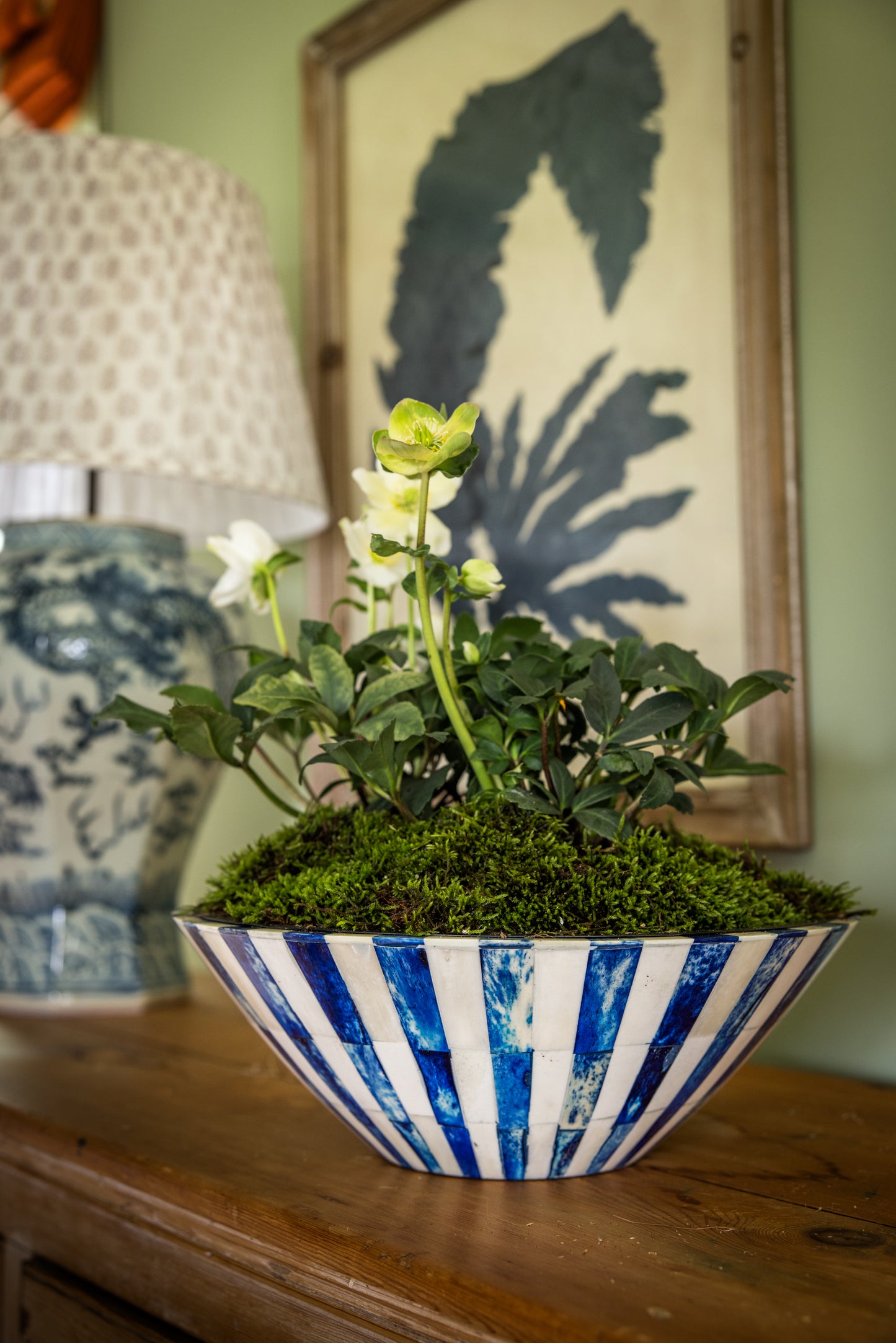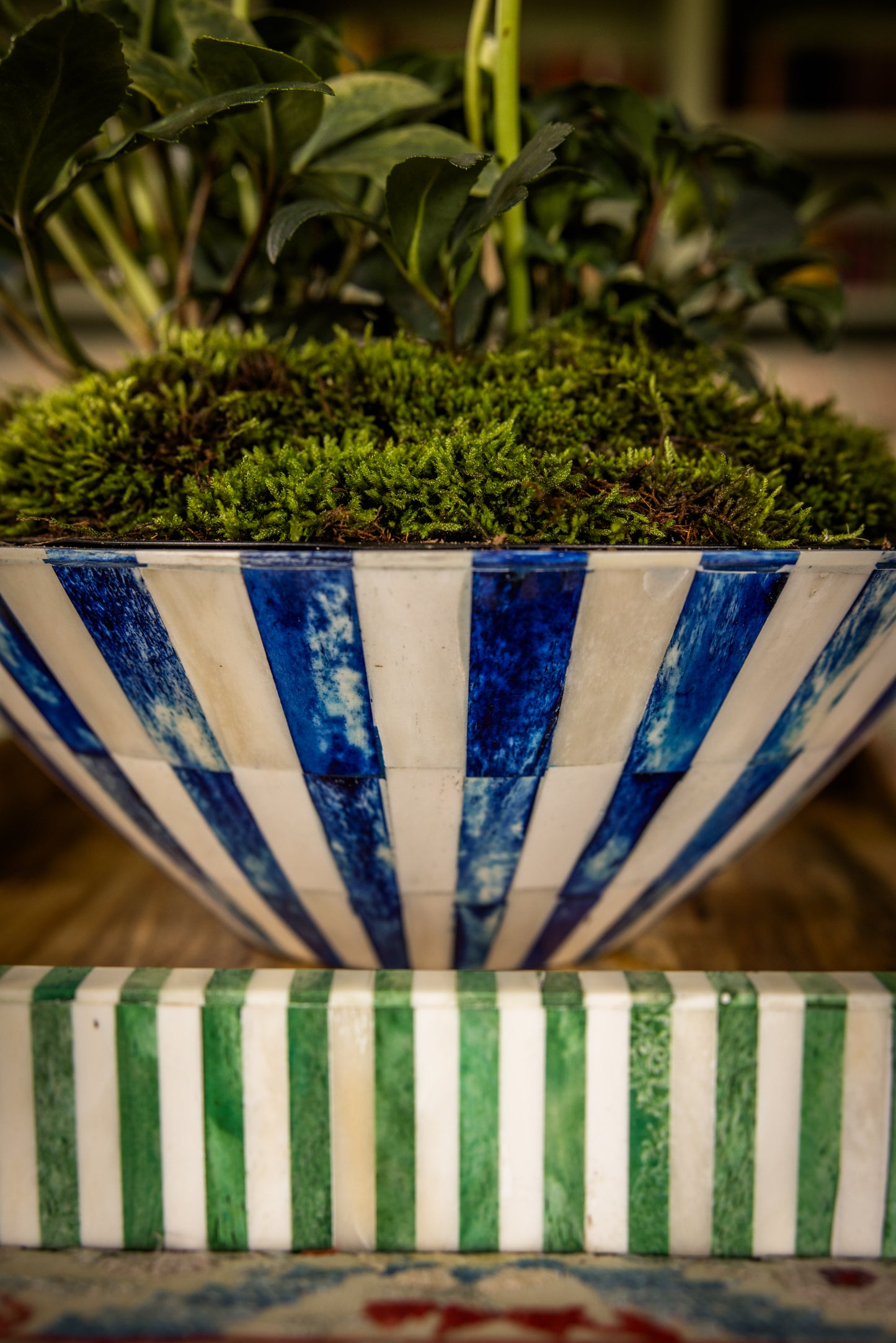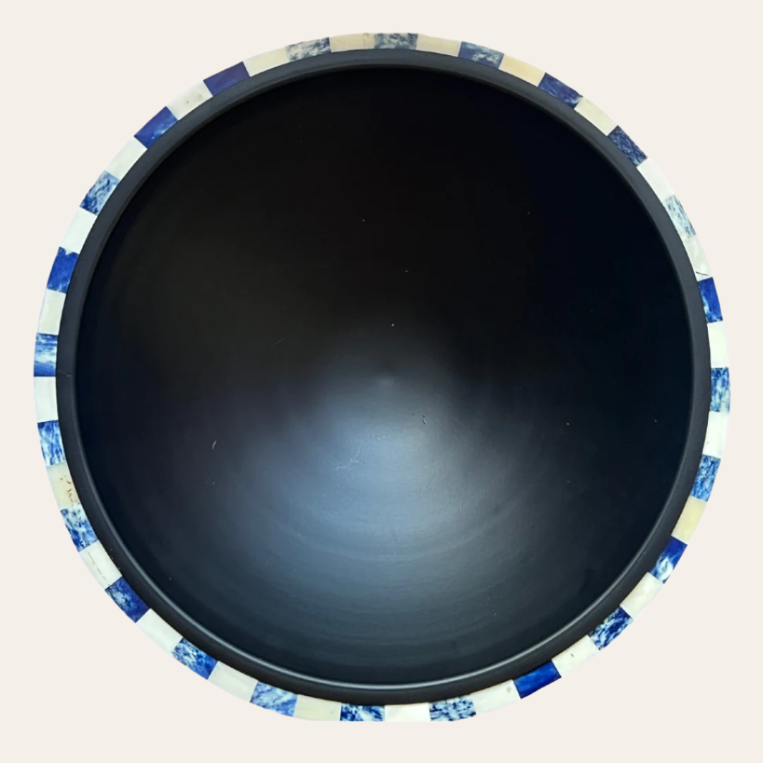 Prix régulier £105.00This beautiful bowl is a new addition to our bone inlay range. Made of Mango wood and inlaid with bone it makes the most beautiful fruit bowl or anything bowl. We have also included a tin insert so that the bowl can also be used as a planter.