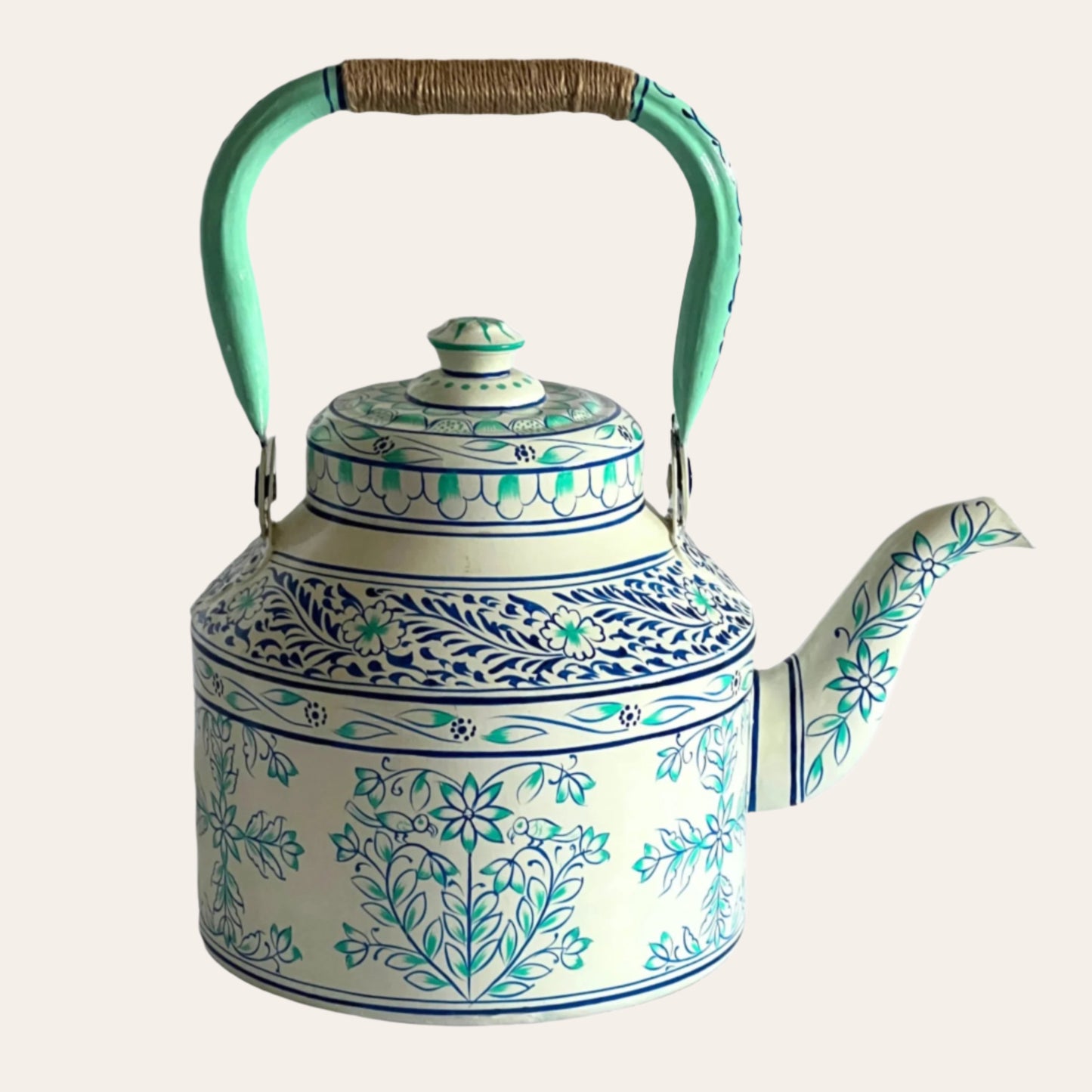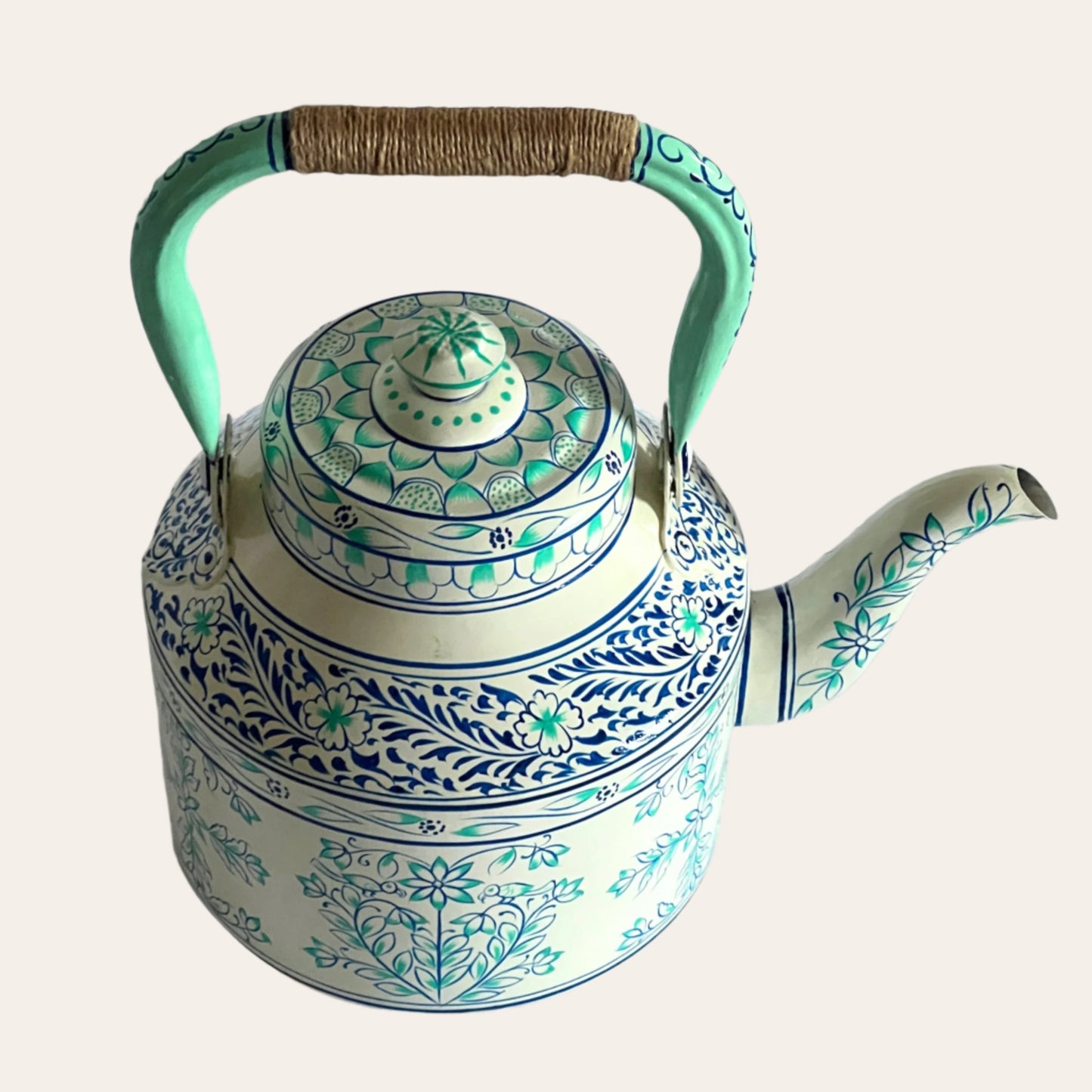 Designed in collaboration with artists in Jaipur our tea kettles are skilfully hand painted making each one a unique piece of art. I use the tea kettle as a tea pot. I have a thing about small tea pots as I don't see the point of them so we have made these extra large. The kettles hold a surprising amount of liquid - 2500ml - always enough for a refill.