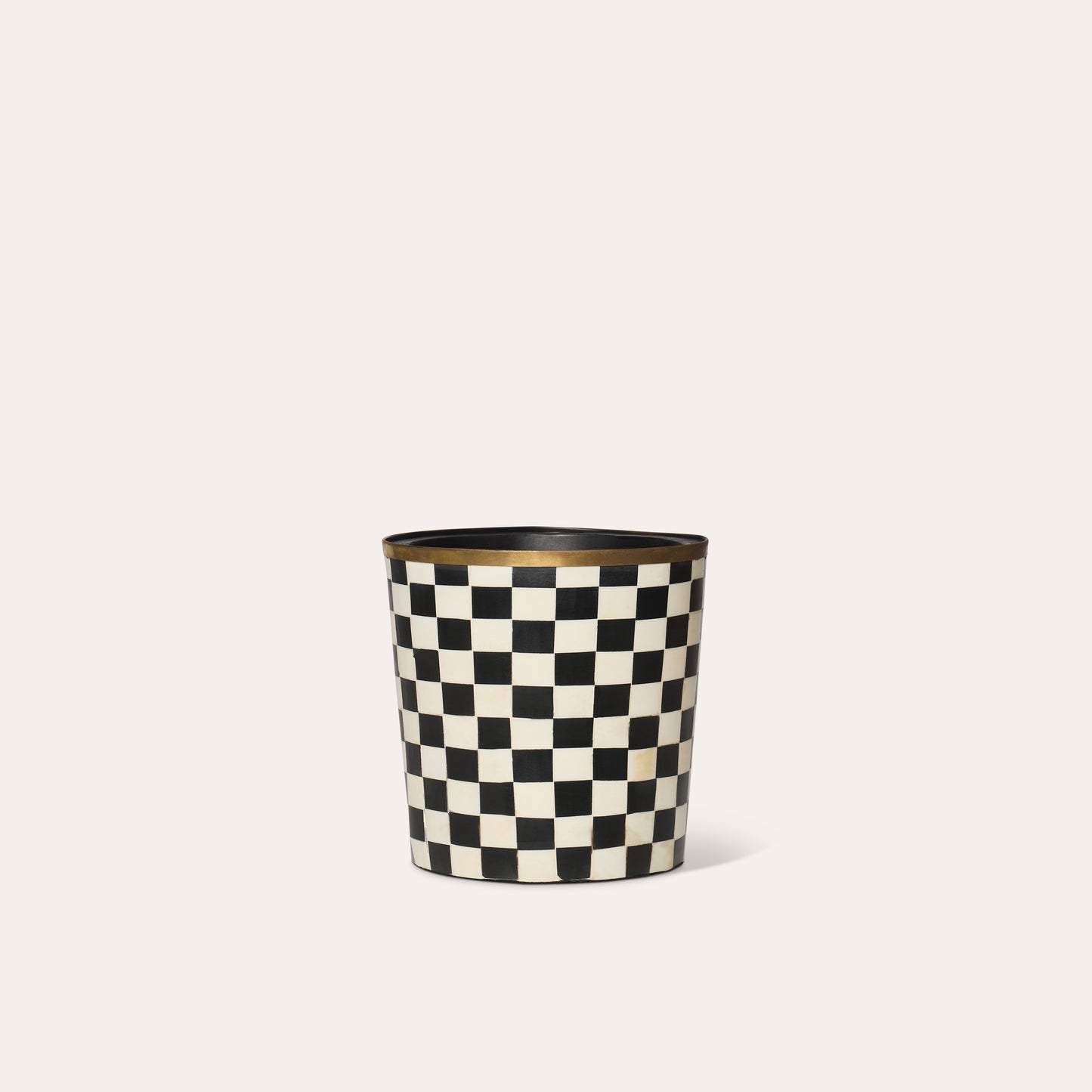 The planters are handmade and every piece of bone inlay is dyed and then stuck on by hand to the wooden base. Each piece of bone absorbs the dye in a slightly different way resulting in beautiful tonal variations. Therefore there will be slight irregularities in every planter adding to their individuality and uniqueness.