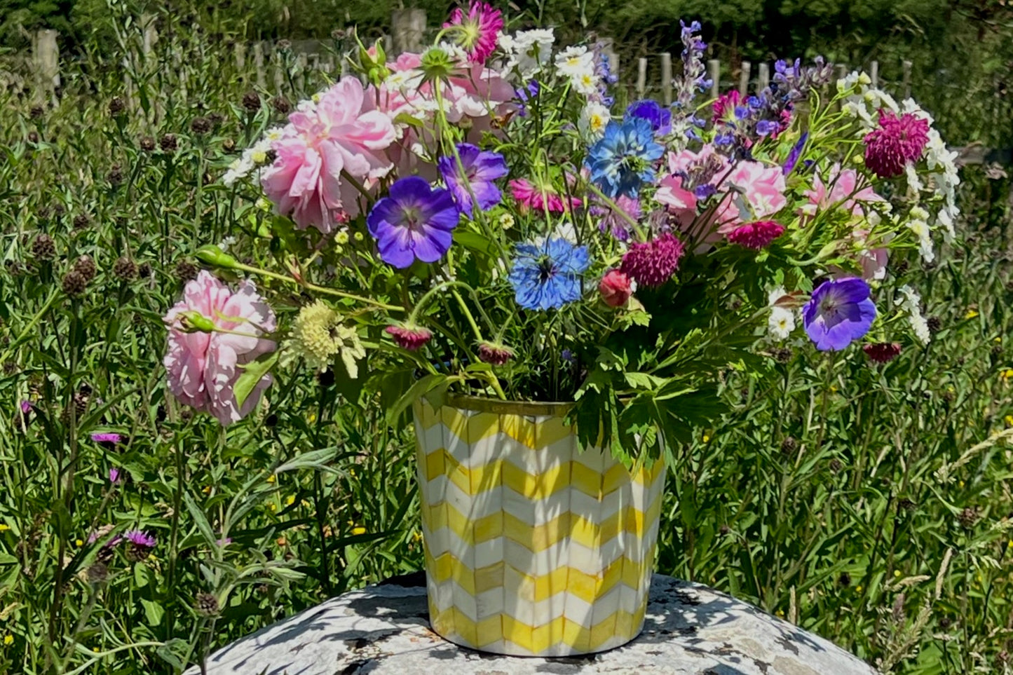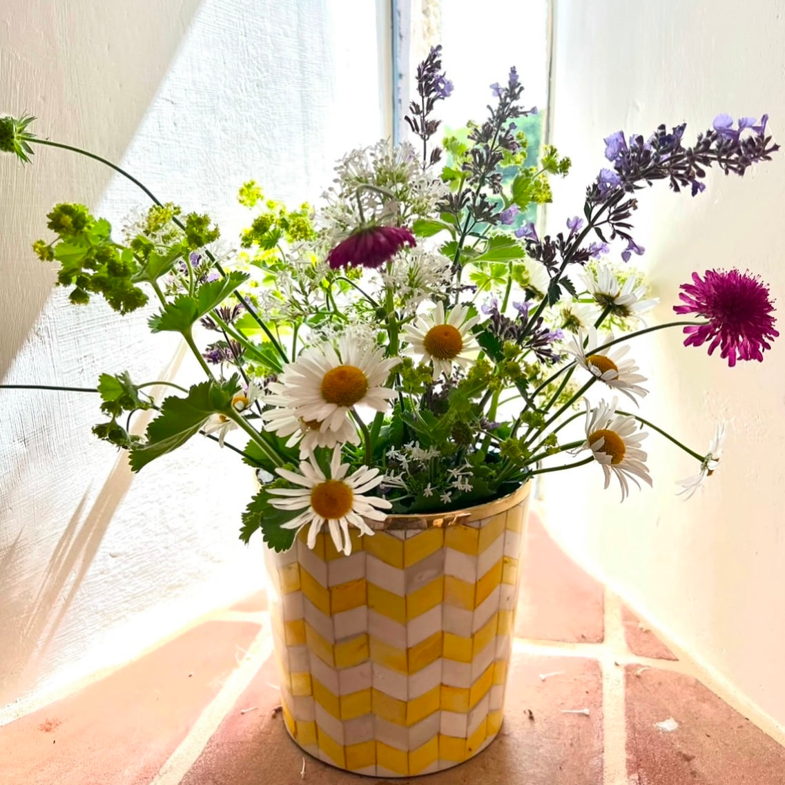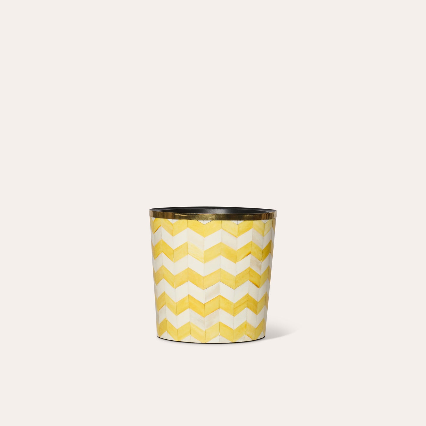 A beautiful Bone Inlay Planter, with a brass rim in our chevron design