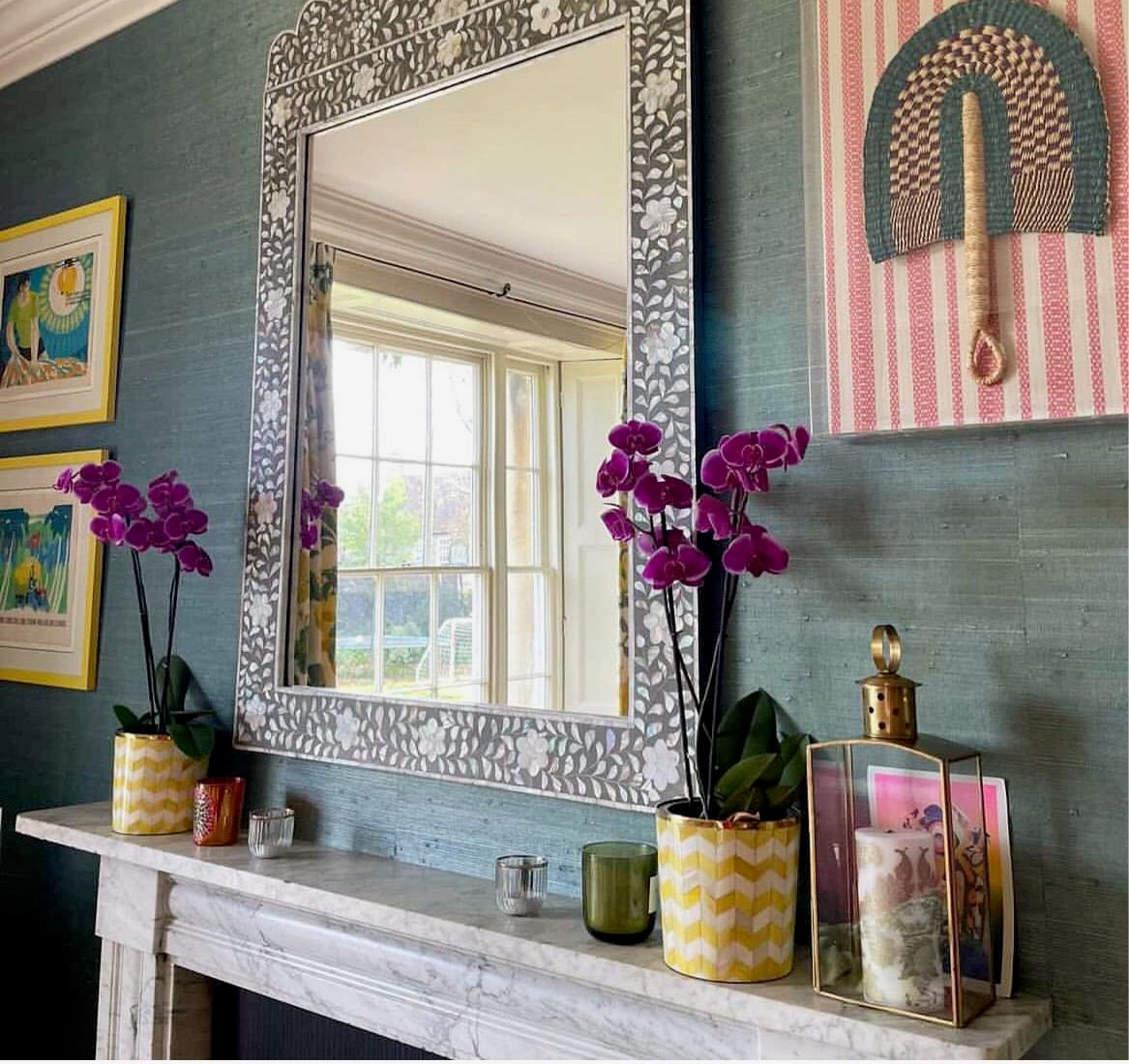 The planters are handmade and every piece of bone inlay is dyed and then stuck on by hand to the wooden base. Each piece of bone absorbs the dye in a slightly different way resulting in beautiful tonal variations. Therefore there will be slight irregularities in every planter adding to their individuality and uniqueness.