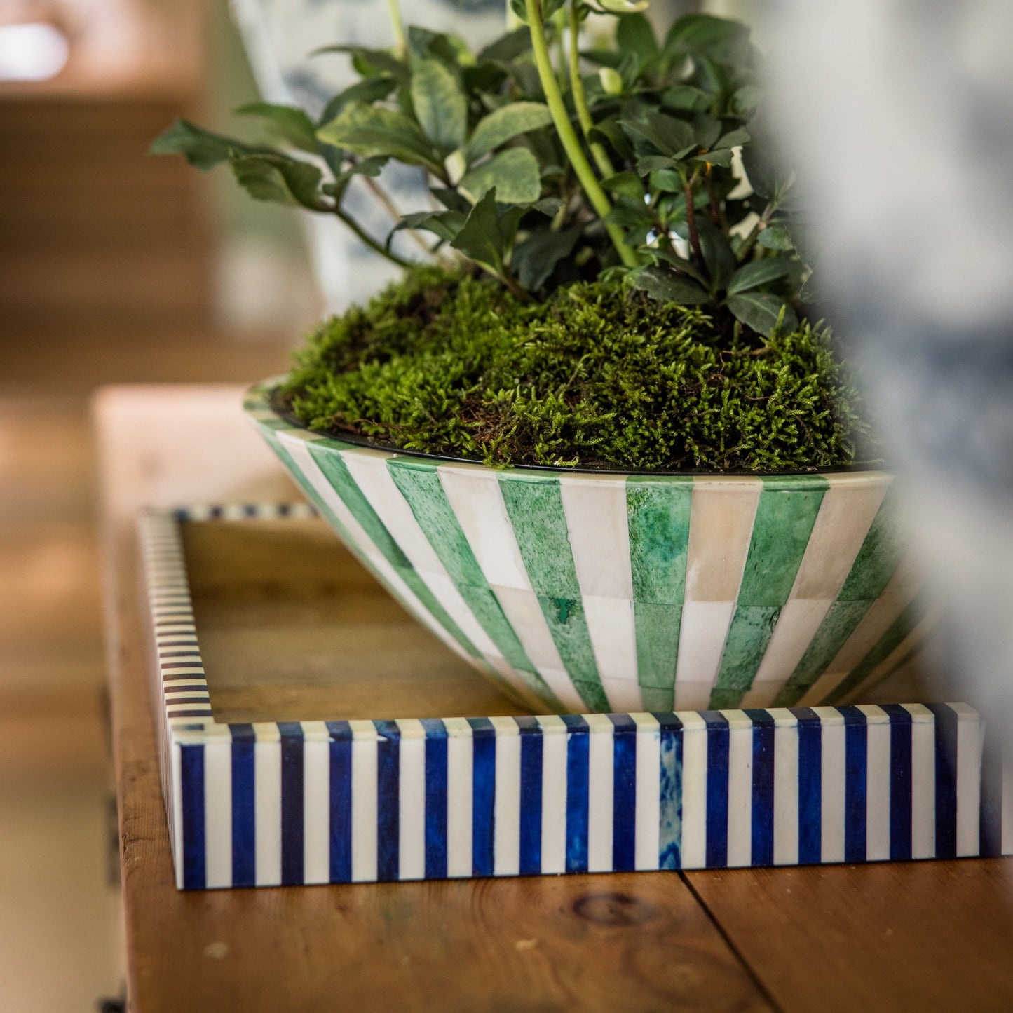 Square Inlay Tray | Large | Blue | Striped